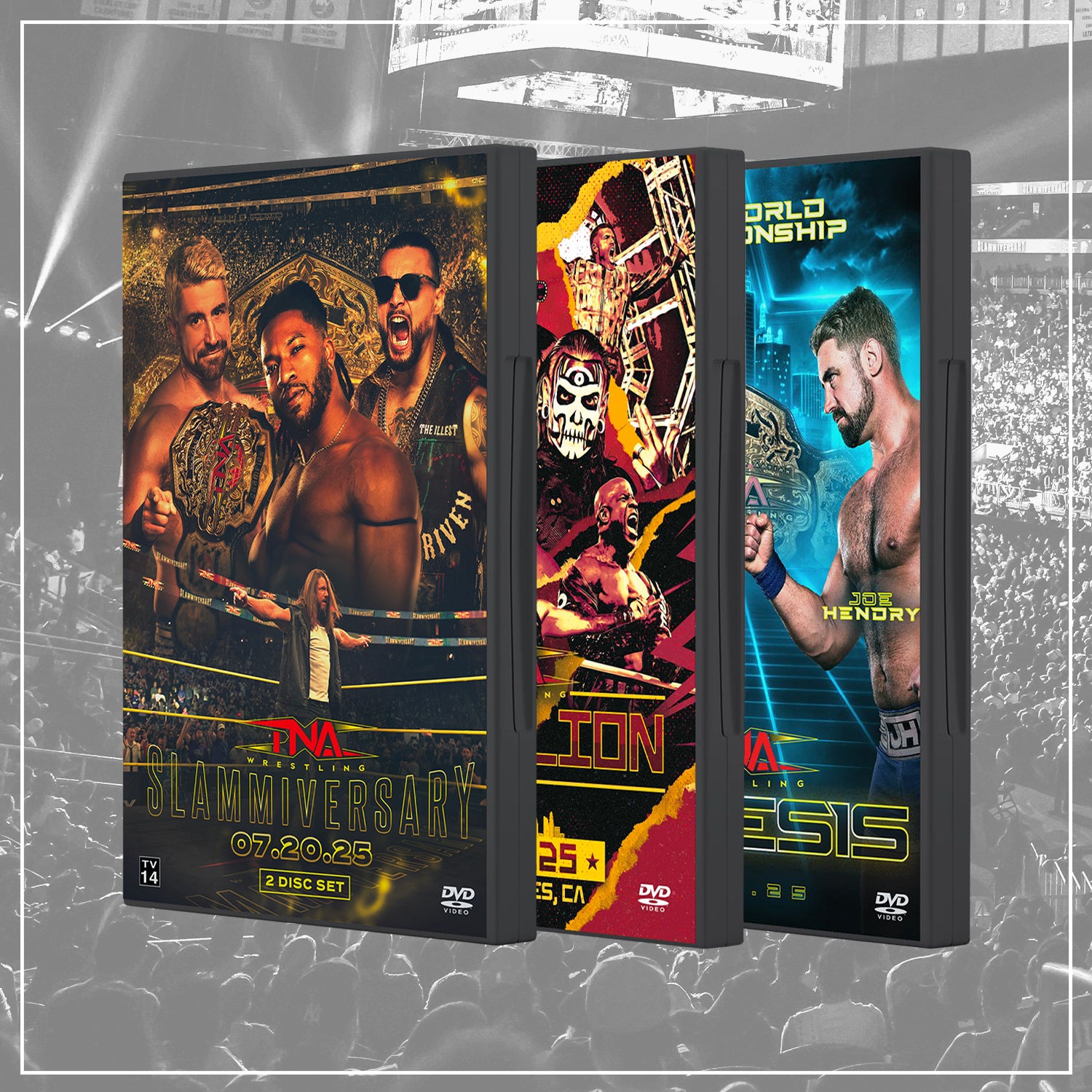 Experience Slammiversary 2025 like never before with this exclusive 2-disc DVD set. Featuring the complete PPV plus Fade To Black, available on DVD for the first time ever, this release also includes the Countdown Show with three matches and exclusive pre and post match interviews. A must-own piece of TNA history.